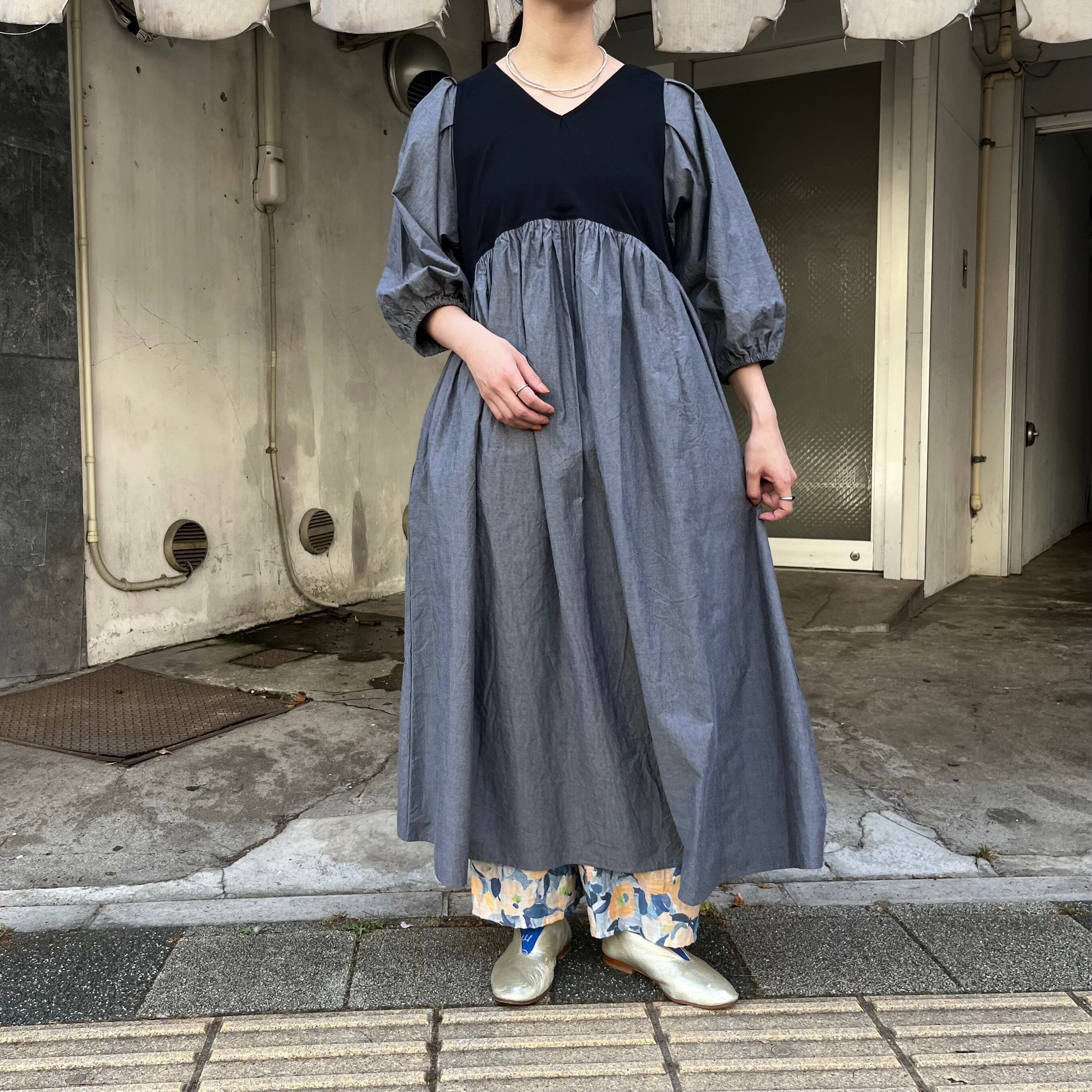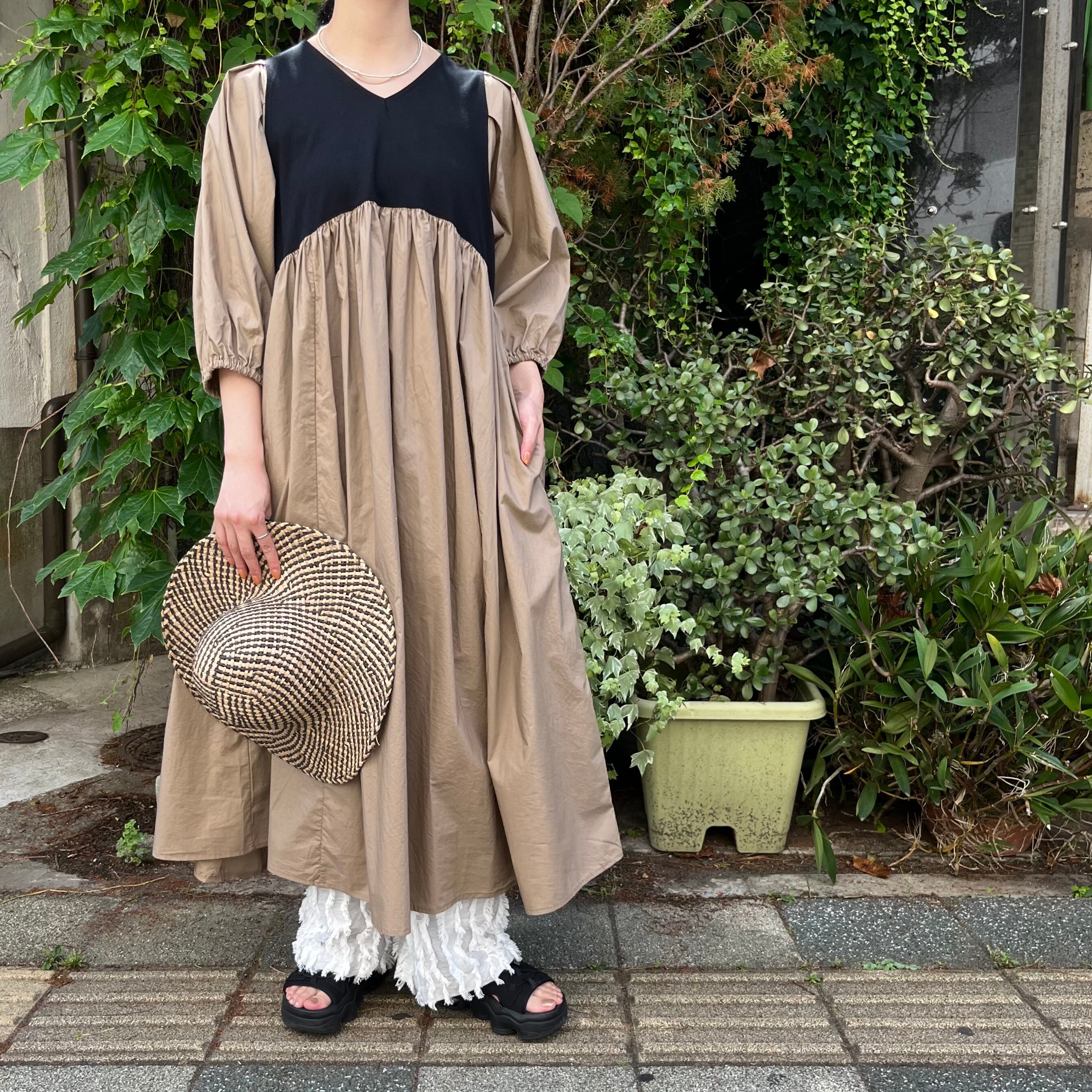 クラシック天竺バイカラーVネックワンピース