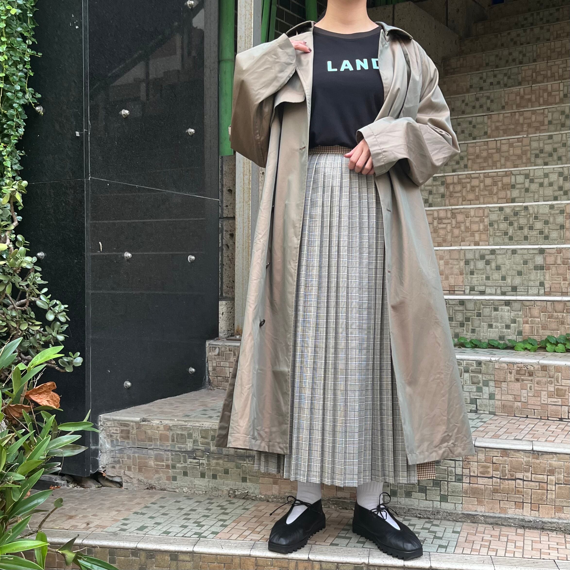 ウール ポリエステル Check switch pleated スカート