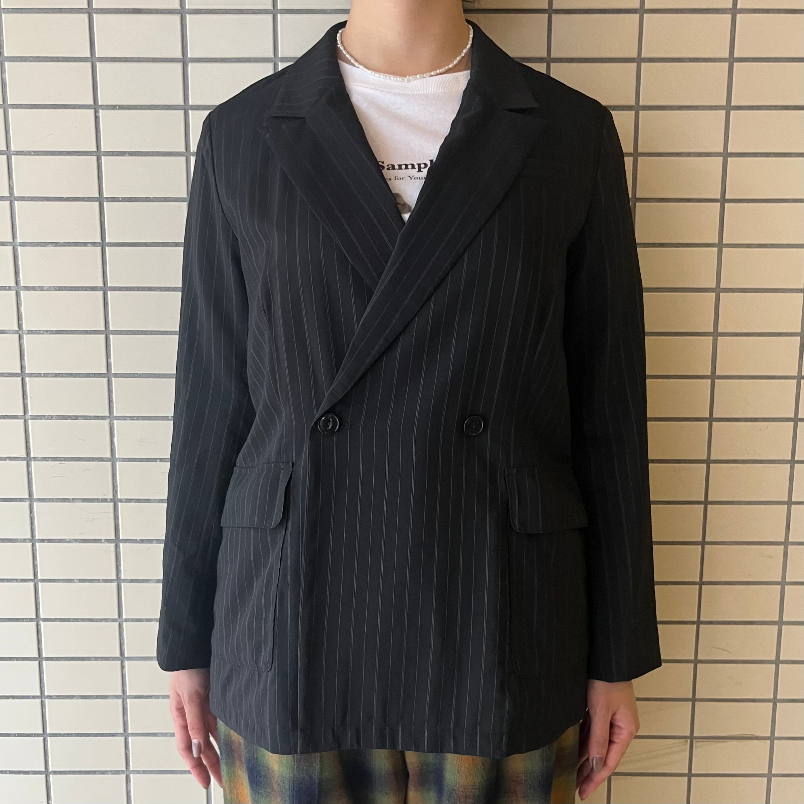 平織ストライプダブルジャケット