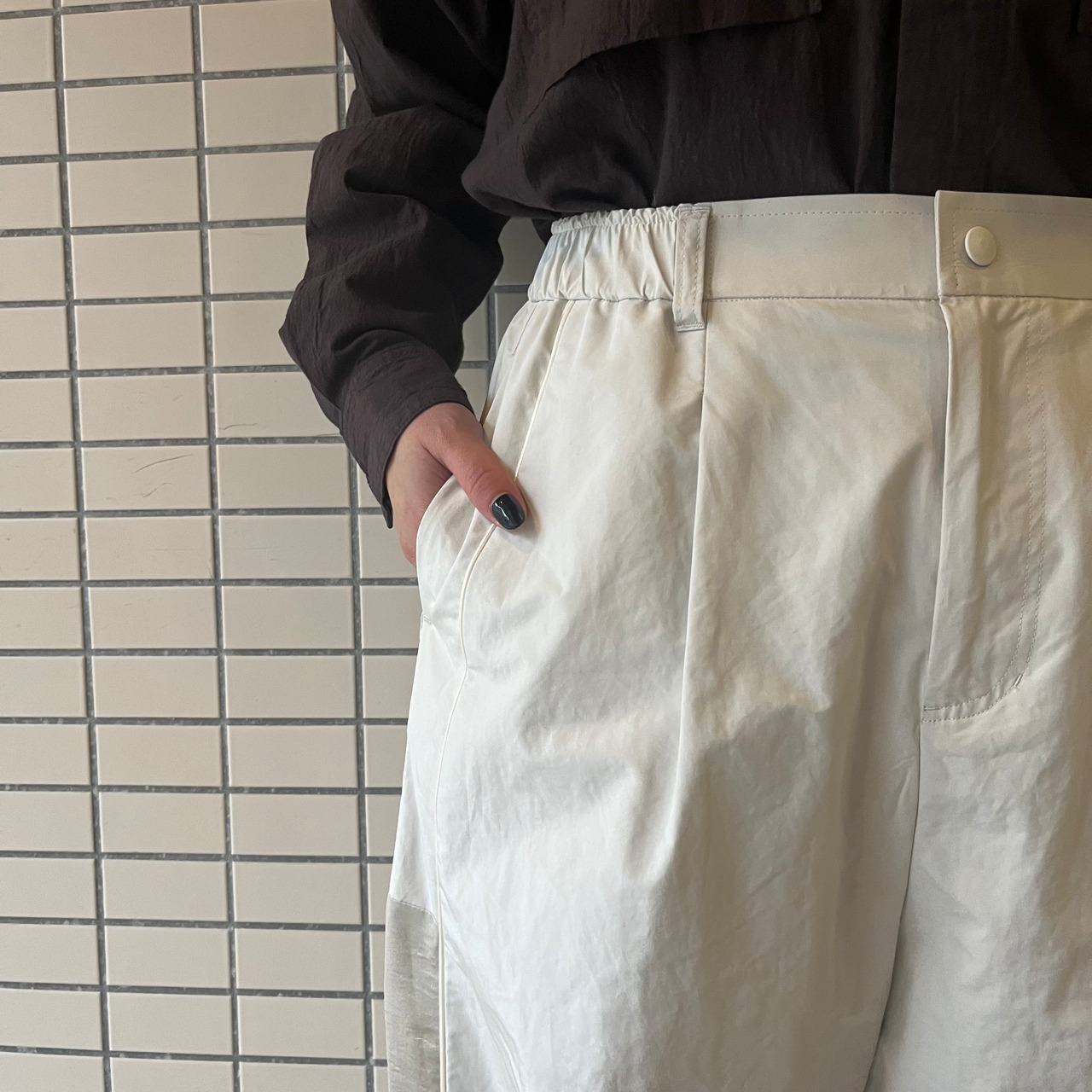 iki/ピーチスキンタフタ サテン切り替えワーク パンツ