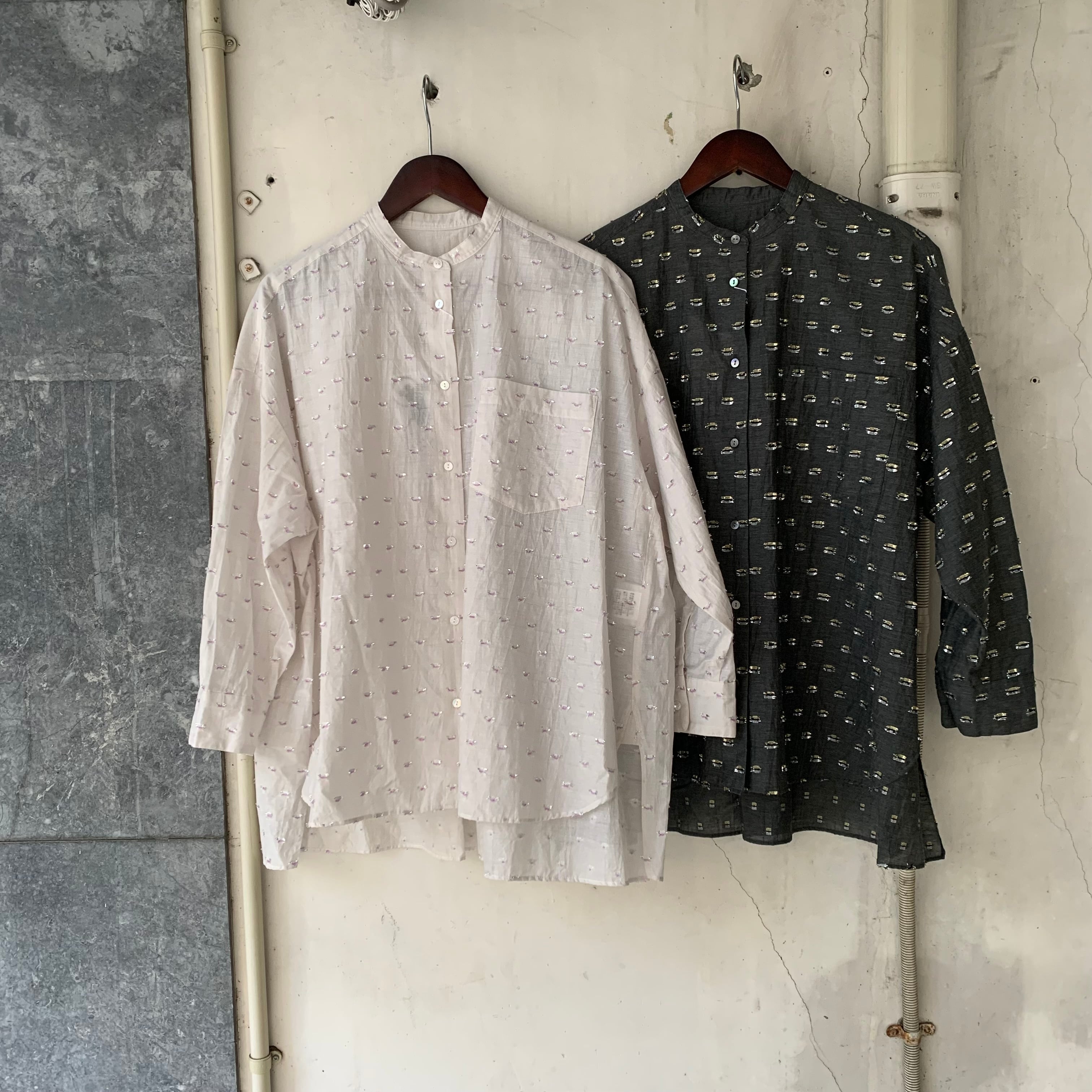 yuni/Cotton/Nylon ラメジャカード wide シャツ