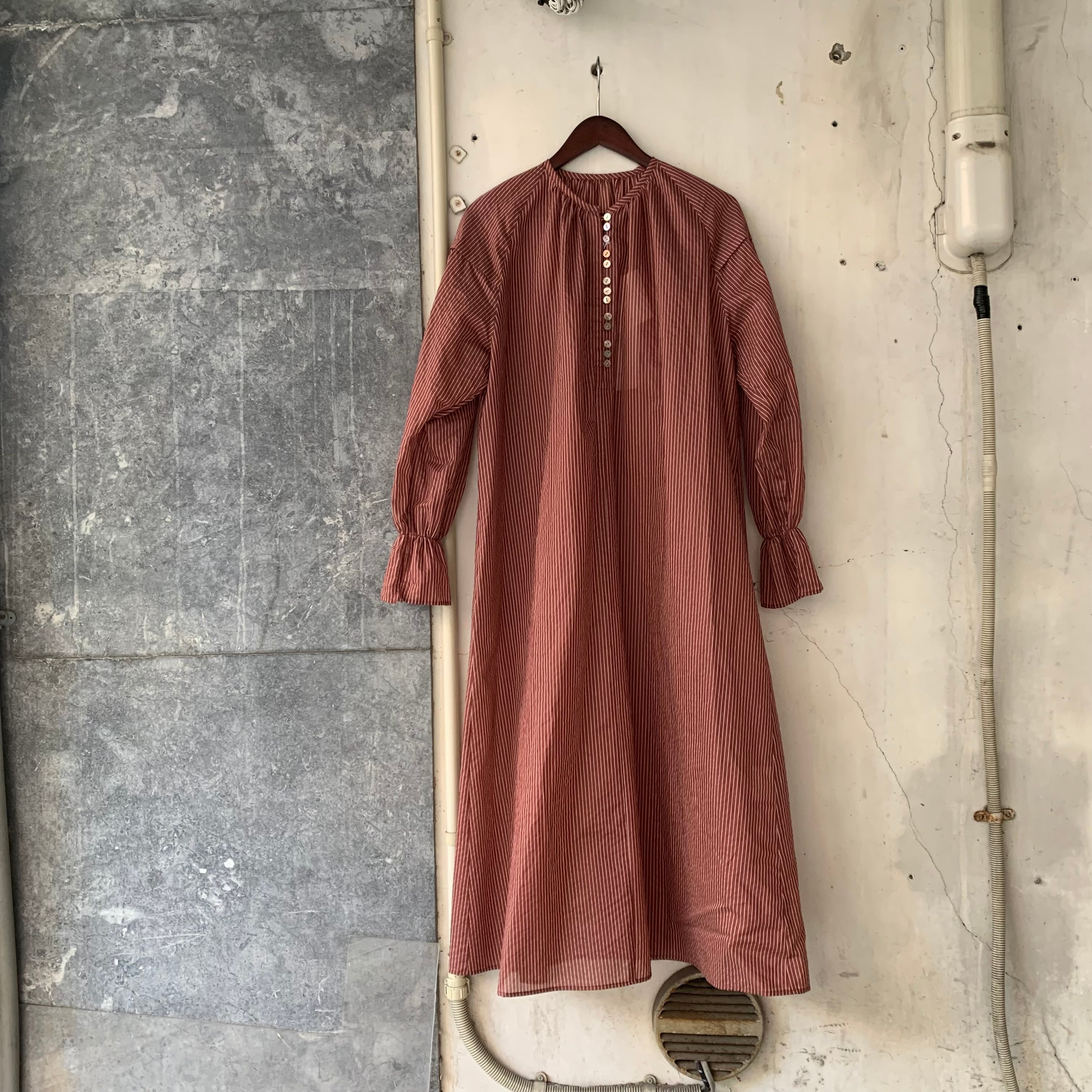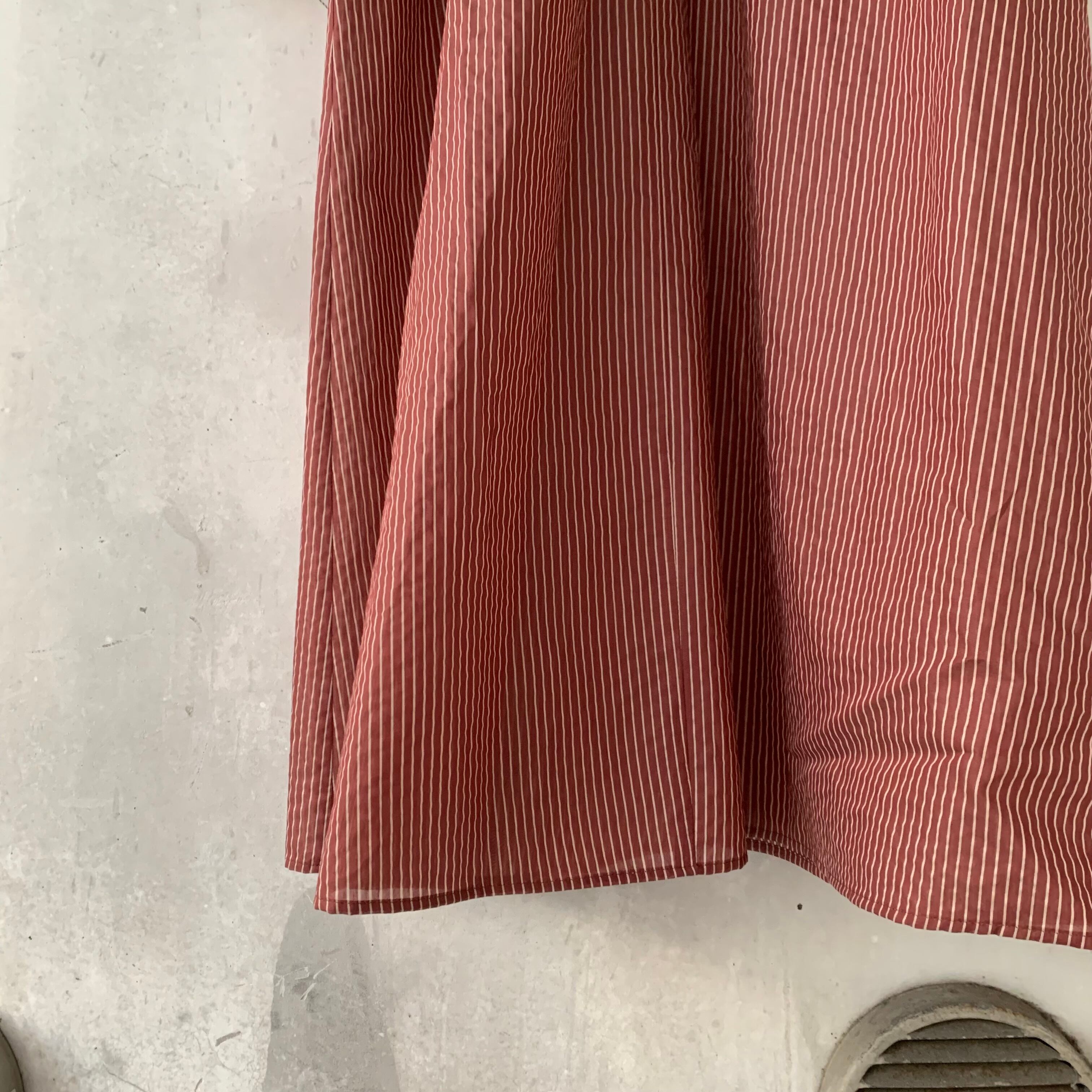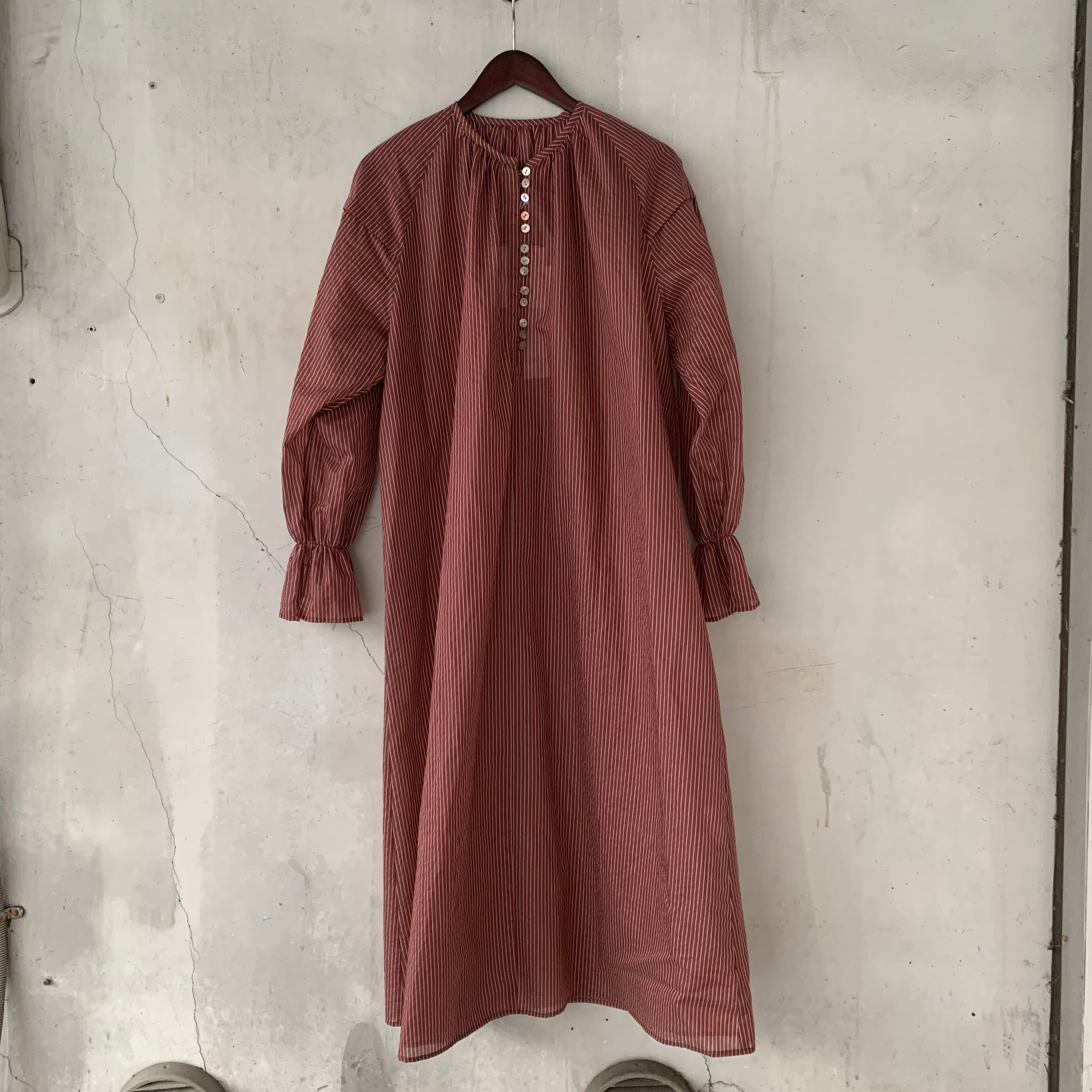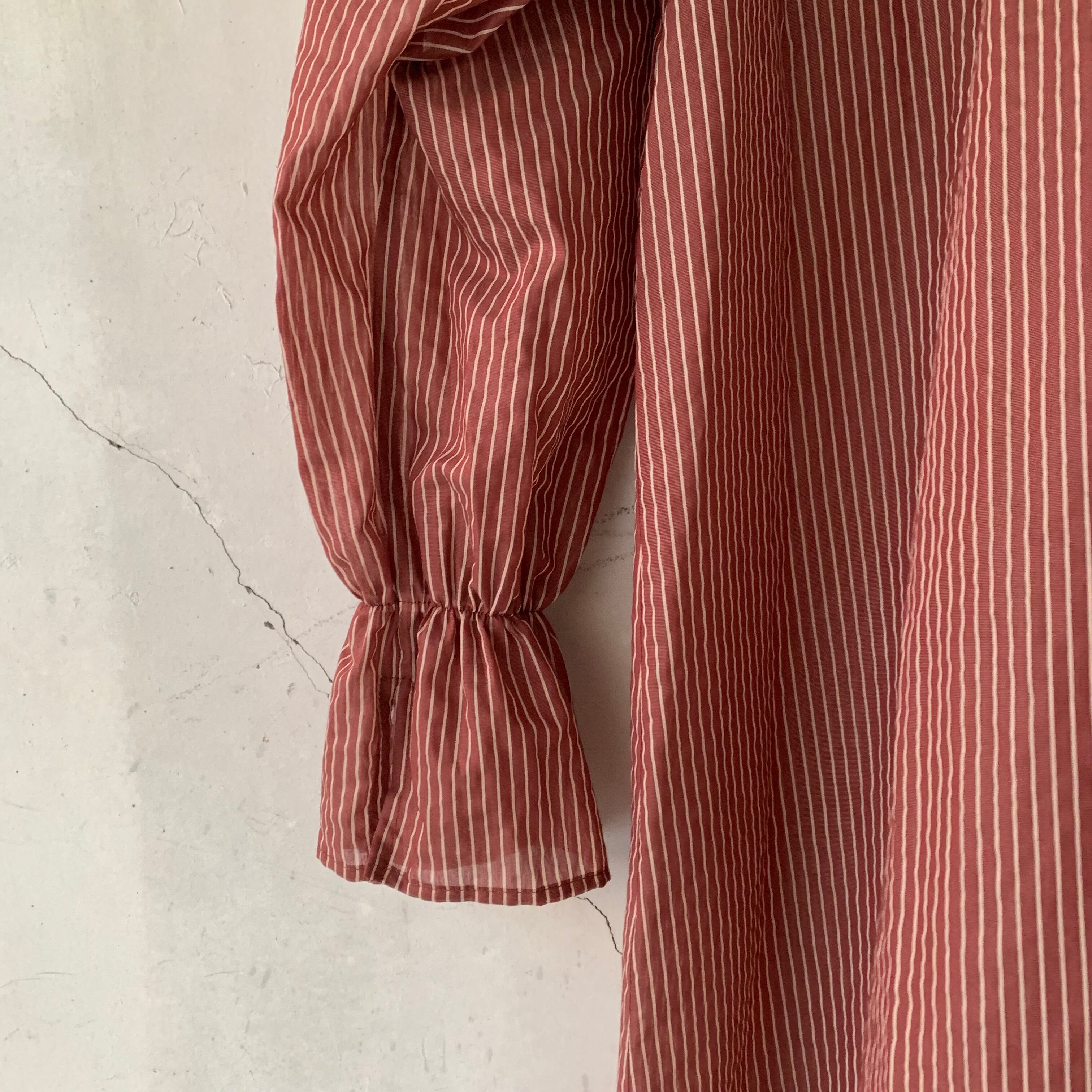 yuni/Cotton Polyester stripe gather sleeves ワンピース