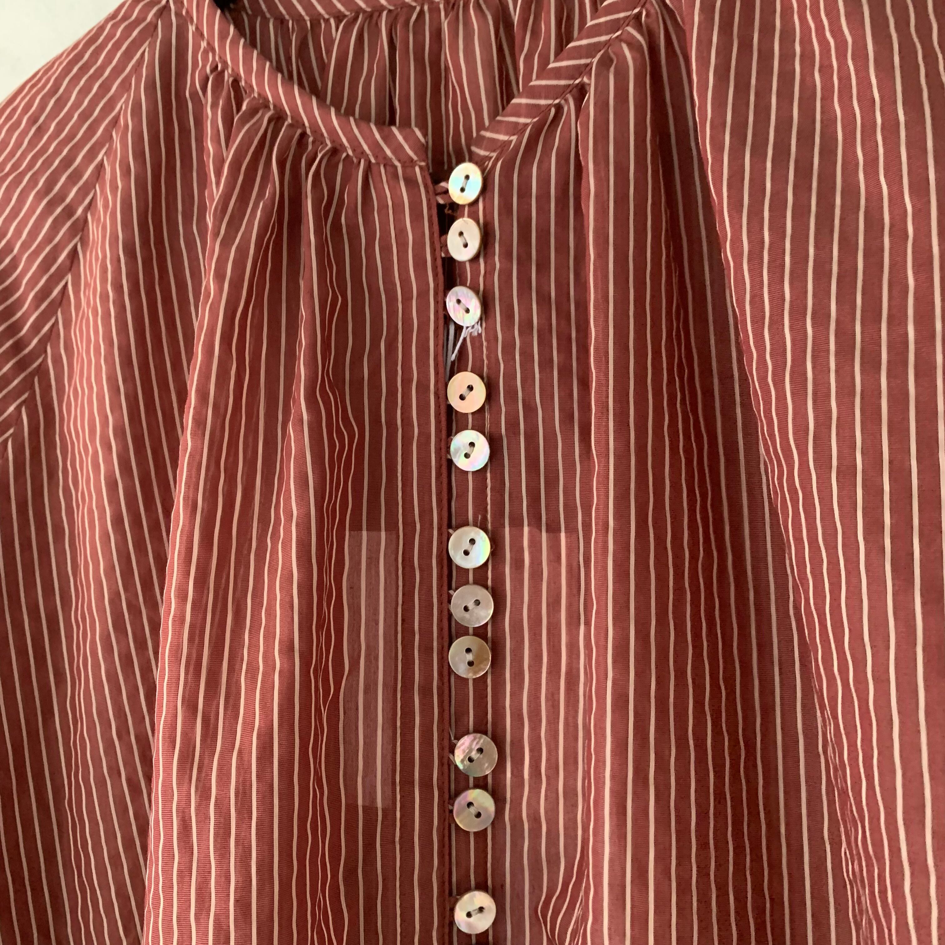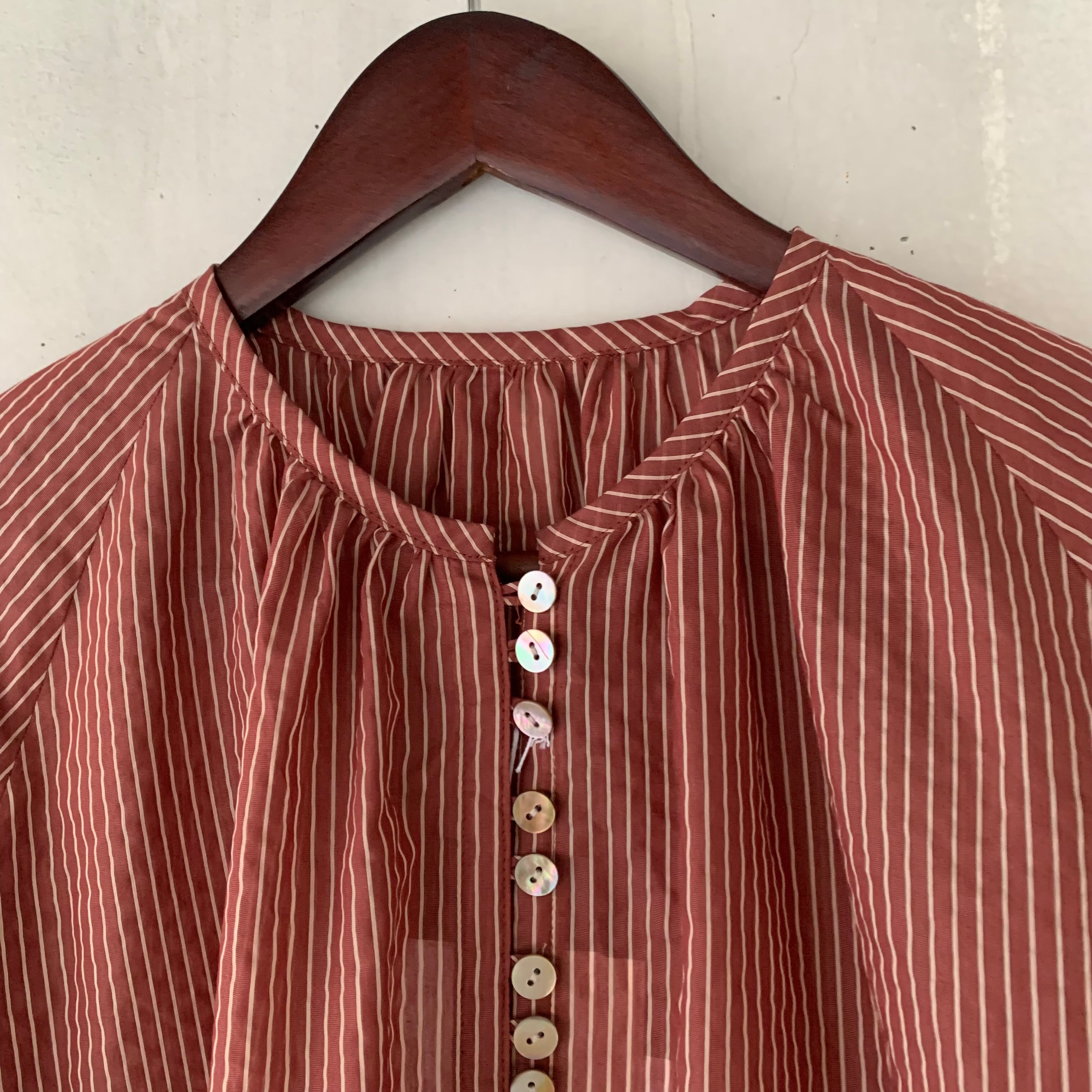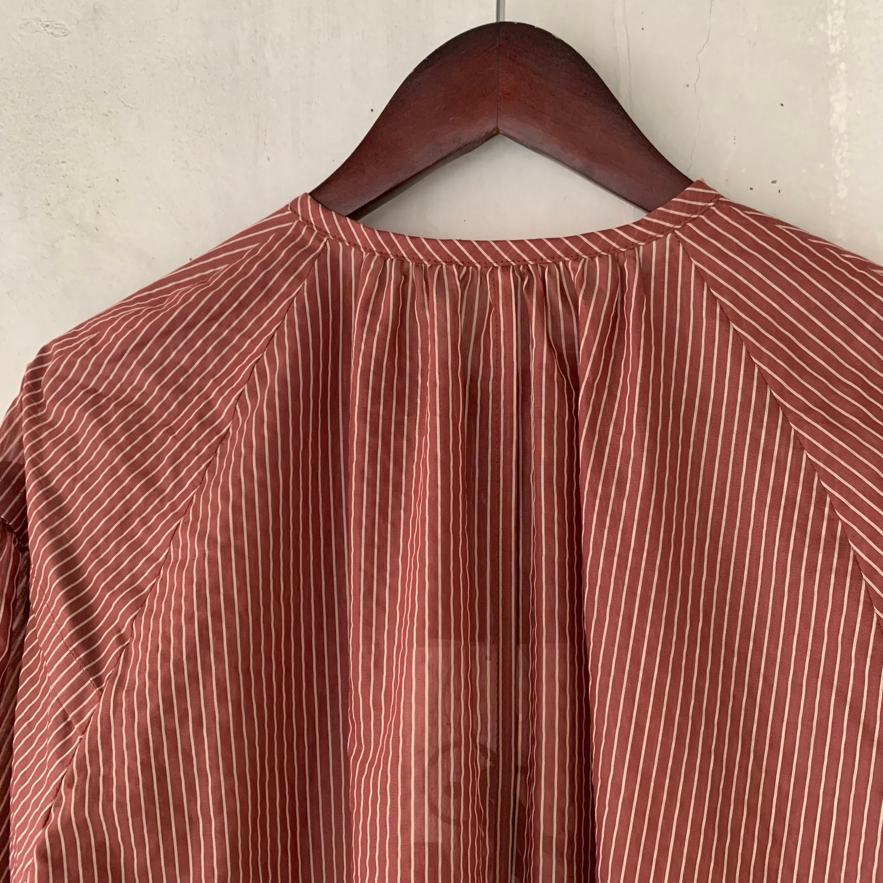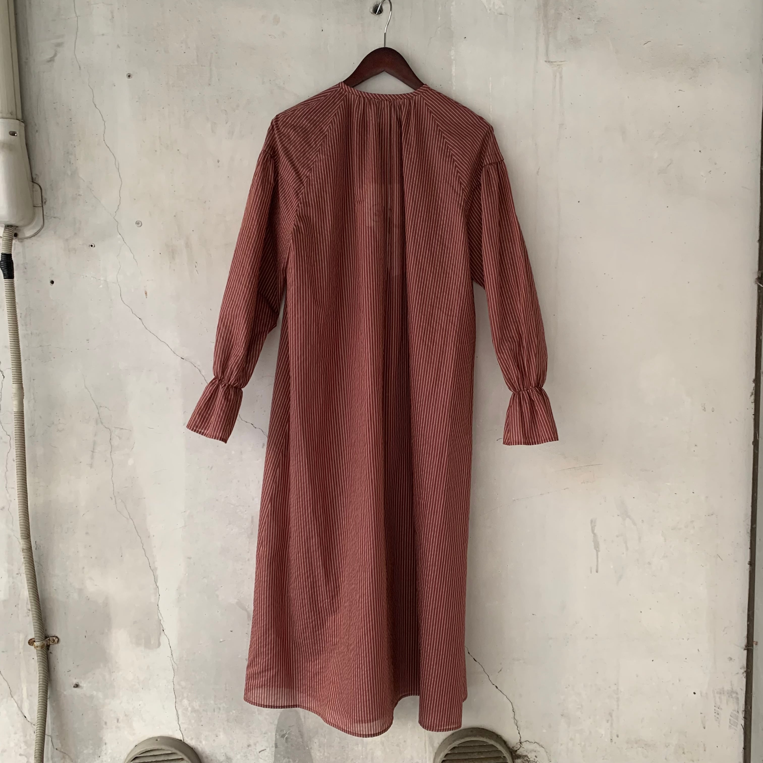 yuni/Cotton Polyester stripe gather sleeves ワンピース
